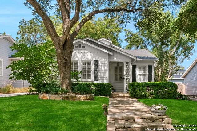 This Alamo Heights jewel has been exquisitely renovated and refined to perfection. The home welcomes you with a gracious formal living room, highlighted by gleaming hardwood floors, plantation shutters, and elegant crown moldings. The adjacent formal dining room is elevated with richly paneled walls, creating a timeless setting for both intimate dinners and grand entertaining. The chef's kitchen, appointed with premium stainless steel appliances, opens seamlessly into a luminous family room designed for both comfort and sophistication. The downstairs primary suite serves as a private retreat, featuring dual vanities, a spacious walk-in closet, a luxurious soaking tub, and an elegant separate shower. A private office, thoughtfully designed for today's lifestyle, completes the main level. Upstairs, a versatile playroom is accompanied by two generously sized bedrooms, each with its own en suite bath. Outdoors, the residence offers a private rear-entry covered carport, along with a charming deck and porch-perfectly suited for both relaxed evenings and refined entertaining. Nestled on a family-friendly street within walking distance to premier shops and dining, this timeless estate seamlessly blends elegance, comfort, and convenience.