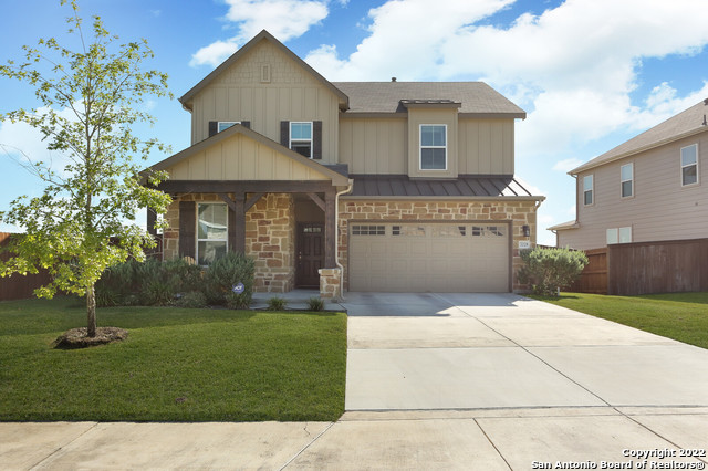 Beautiful 4 bedroom home located in the sought after Homestead Neighborhood and perfectly situated in the heart of Schertz. Secondary bedroom or office and full bath on the 1st floor. The open floor plan makes it fantastic for entertainment as the kitchen with kitchen island, stainless steal appliances, gas cooktop, rustic stone back splash, plenty of cabinets and counter space overlooks the living room. The small nook right next to the kitchen makes it a cute area to prepare your early morning coffee. Lots of windows on the first floor allow for loads of natural light to enter the home. Unwind in the spa like master bathroom with double vanity, shower and tub. Relax in the spacious backyard with the covered patio. Easy access to I35, restaurants, shopping and highly rated schools in the Schertz-Cibolo district.
